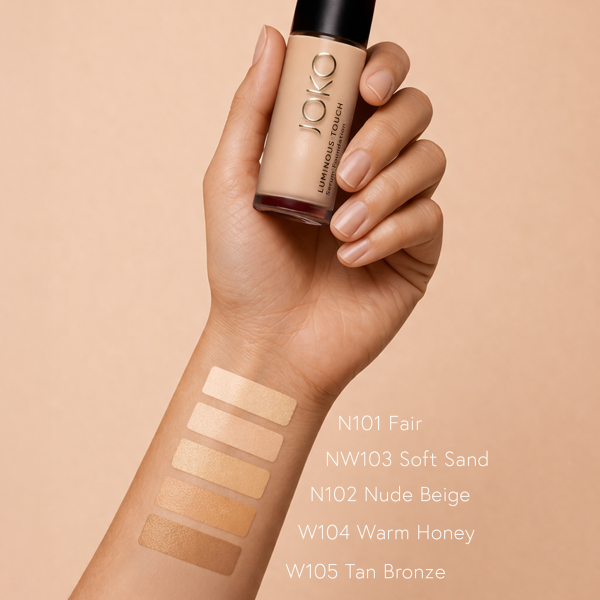 JOKO Luminous Touch Serum Foundation to lekki, innowacyjny podkład-serum, który łączy efekt naturalnego makijażu z pielęgnacją skóry. Zapewnia świeży, promienny wygląd bez efektu maski i bez obciążania cery. Formuła idealnie stapia się ze skórą, wyrównuje koloryt i podkreśla naturalne piękno. To doskonały wybór dla kobiet, które oczekują komfortu noszenia i efektu „healthy glow” przez cały dzień. Podkład nowej generacji, który działa jak makijaż i pielęgnacja w jednym. Jego lekka, oddychająca formuła została stworzona z myślą o wszystkich typach skóry – również tej wrażliwej i wymagającej. Nie obciąża, nie podkreśla zmarszczek i pozwala skórze wyglądać naturalnie świeżo.